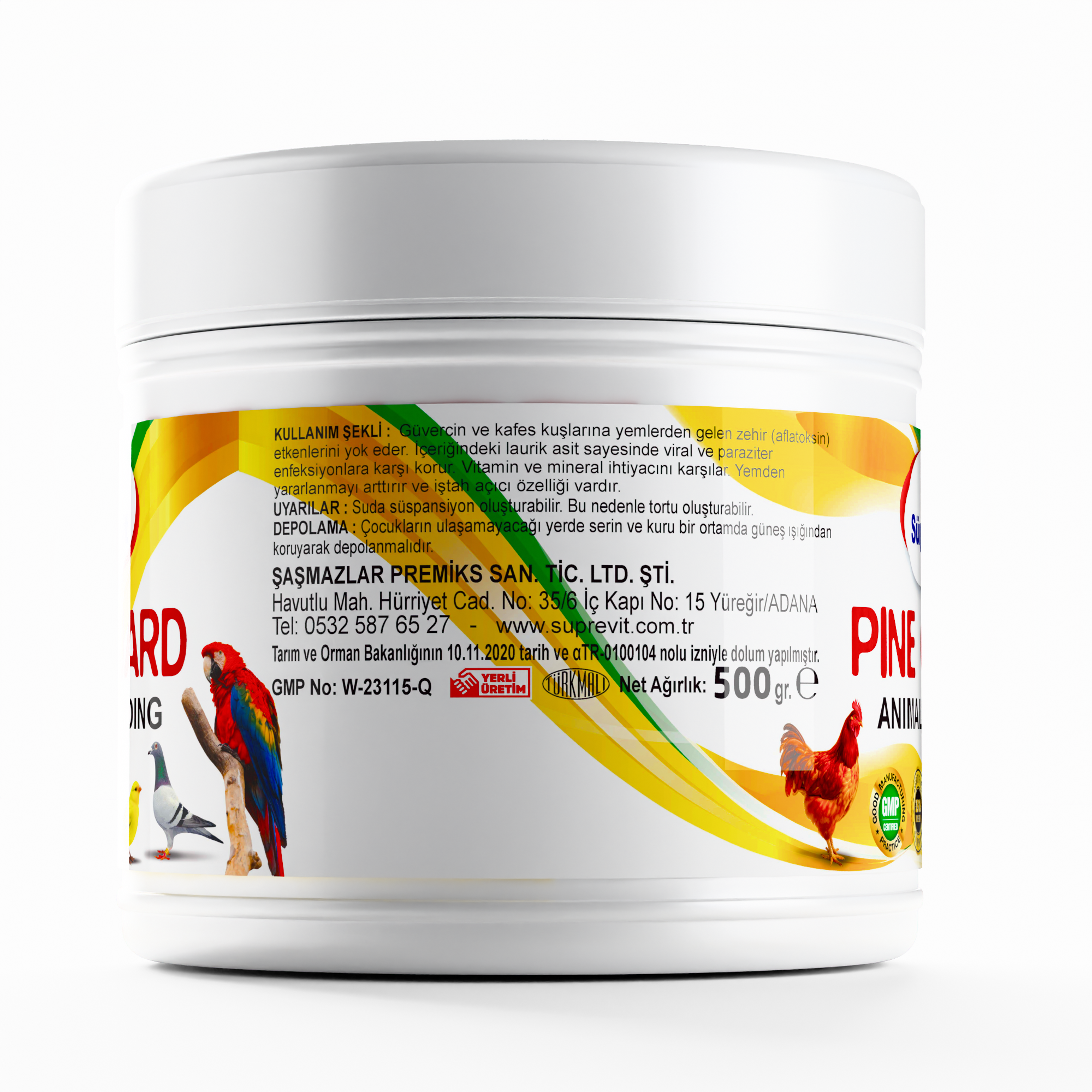 Süprevit Pine Guard, kuşların bağışıklığını güçlendirmek, metabolizma sağlığını desteklemek ve yemden maksimum verim alabilmek için formüle edilmiş özel bir takviyedir. Laurik asit içeriği sayesinde viral ve paraziter enfeksiyonlara karşı güçlü bir koruma sağlar. Vitamin D3, E vitamini, selenyum, mangan, demir, kobalt ve çinko gibi hayati mineraller kuşların genel sağlık ve performansını artırır. İnaktif maya bağırsak sağlığını desteklerken bağışıklık direncini yükseltir, halofuginon gibi özel bileşenler ise bağırsak florasının dengelenmesine katkı sunar. Vanilya aroması ve özel bağlayıcılar iştah açıcı özellik katarak yem tüketimini artırır. Yarış dönemleri, tüy değişim süreçleri, stresli koşullar ve bağışıklığın zayıfladığı dönemlerde güvenle kullanılabilecek ideal bir premikstir.